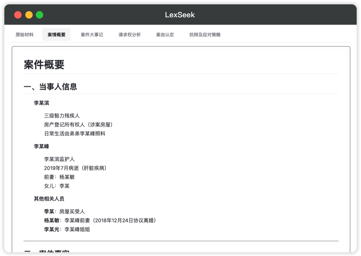 - 结构化呈现案件事实与争议